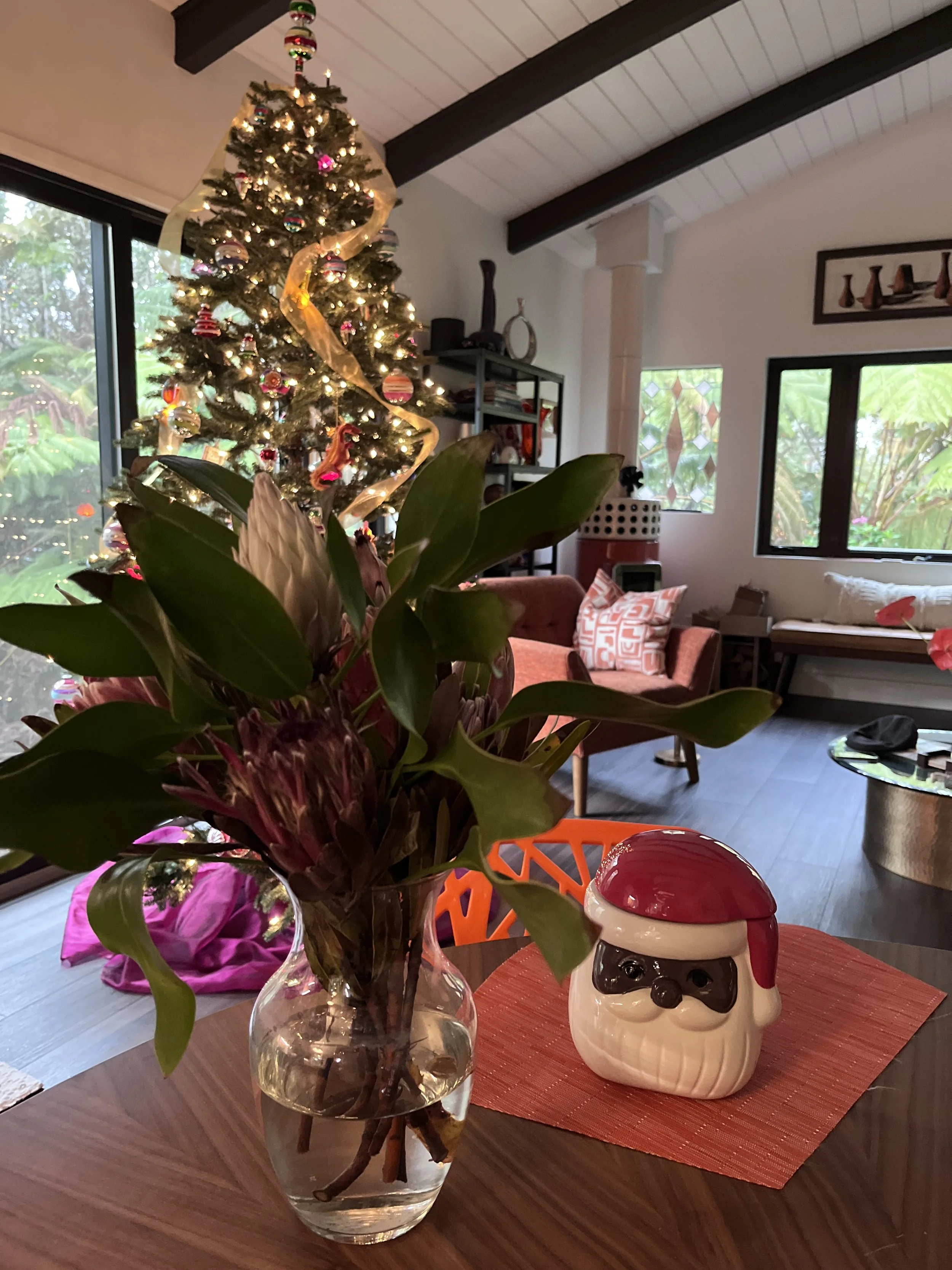 Not a single moment of this would have been possible without the unbelievable generosity of Chris and Eric. They provided us a place to call home for the time we were in Hawaiʻi and we are forever grateful. In fact, we not so secretly hope they will come with us to Sicily and remodel a palazzo because they have unmatched style, attention to detail, and incredible cooking accoutrement! Each day we were surrounded by mountains of love and laughter. Upon our return from Oʻahu Chris surprised us by setting up a Christmas tree and Krystal sat staring at the tree in total disbelief for days. Home truly is where your heart is surrounded by your dearest friends and quirky dogs.
