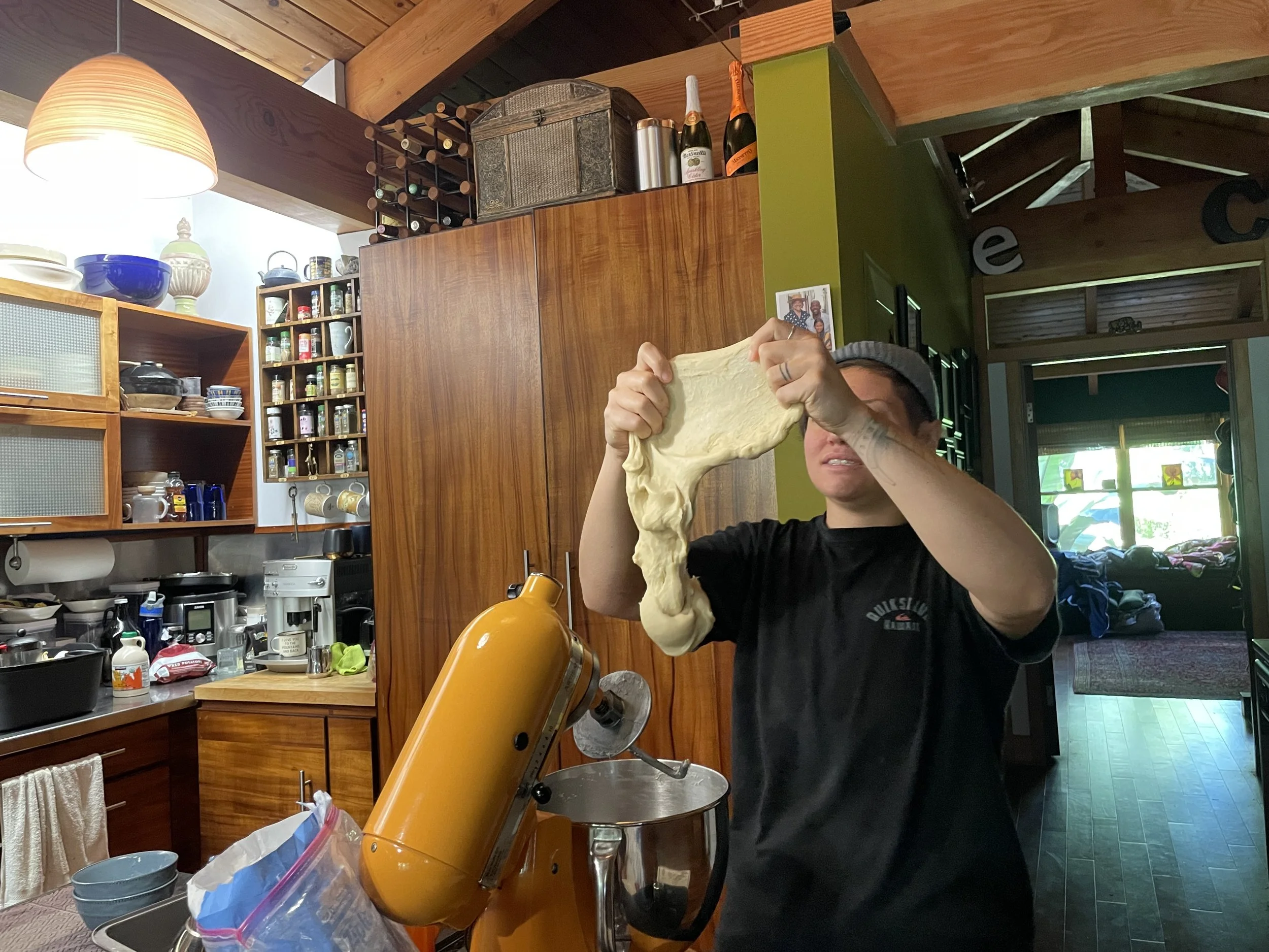 The hale we called home had a righteous kitchen set up and Mary was a baking queen! We ate so much bread and it was all super delicious. We also shared a lot of bread! Given our short stay in Hawaiʻi we opted not to get a rental car because the cost was absolutely bananas. Thankfully, lots of folks let us borrow their cars! One of our bread delivery adventures took us through the mountain coffee farm roads and the car we were borrowing definitely was not cut out for the uphill climb. Good thing we have strong legs! After a bit of a ruckus between the two of us (the walk was literally straight uphill) we made our way to deliver fresh bread to Lei and Jerry at Kupaianaha.